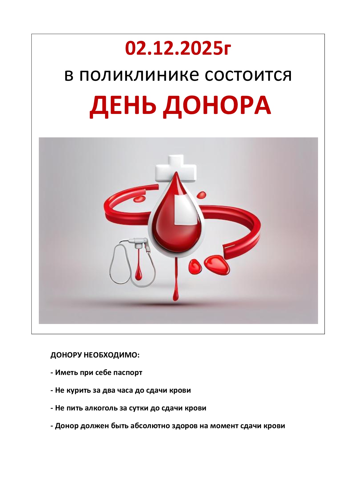 - Донор должен быть абсолютно здоров на момент сдачи крови